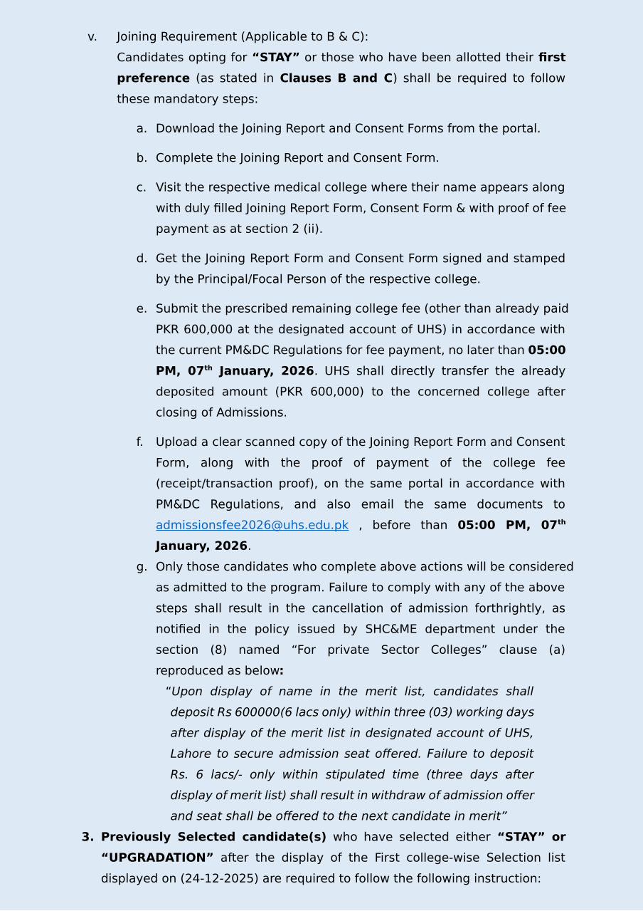 Second College-wise Selection List for Admission in Private Sector Medical Colleges of Punjab against Open Merit & Overseas Quota Session 2025-2026