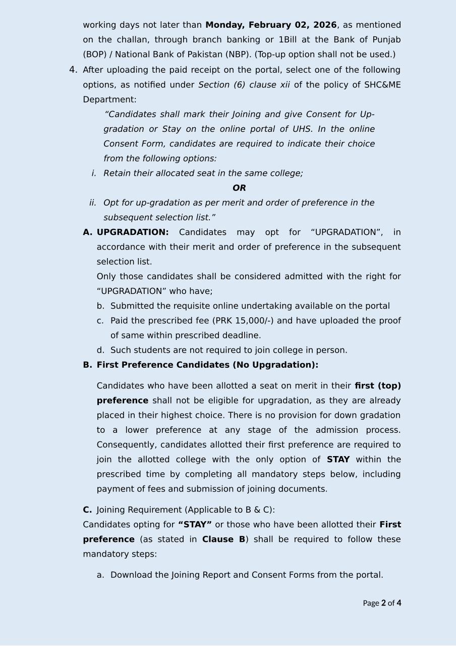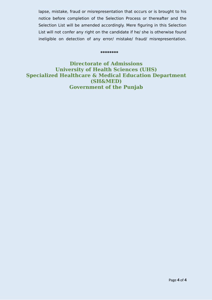 First Selection List for Admission in BS Nursing Generic (4-Year) Public Sector Nursing Colleges of Punjab Session 2025-2026