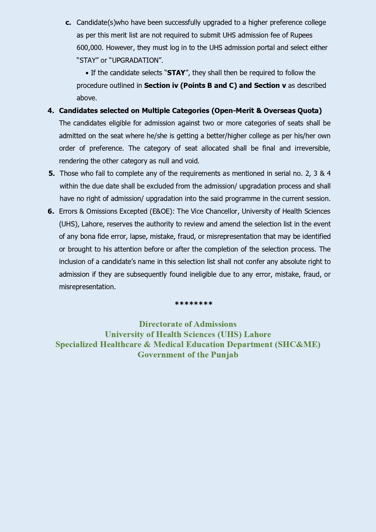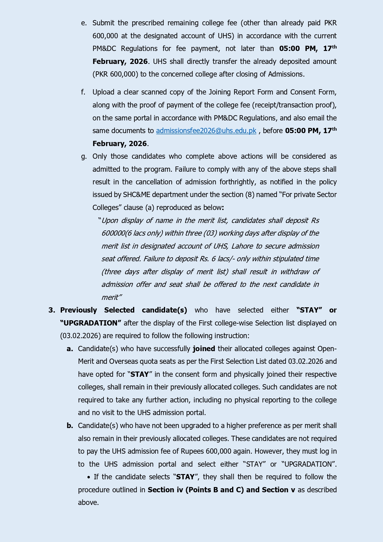 Second College-wise Selection List for Admission in Private Sector Dental Colleges of Punjab against Open Merit & Overseas Quota Session 2025-2026