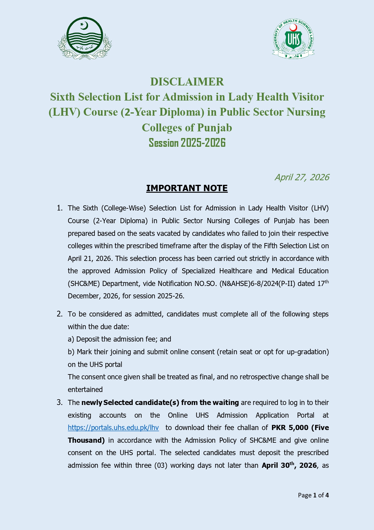 College of Nursing, Sir Ganga Ram Hospital, (FJMU) Lahore |