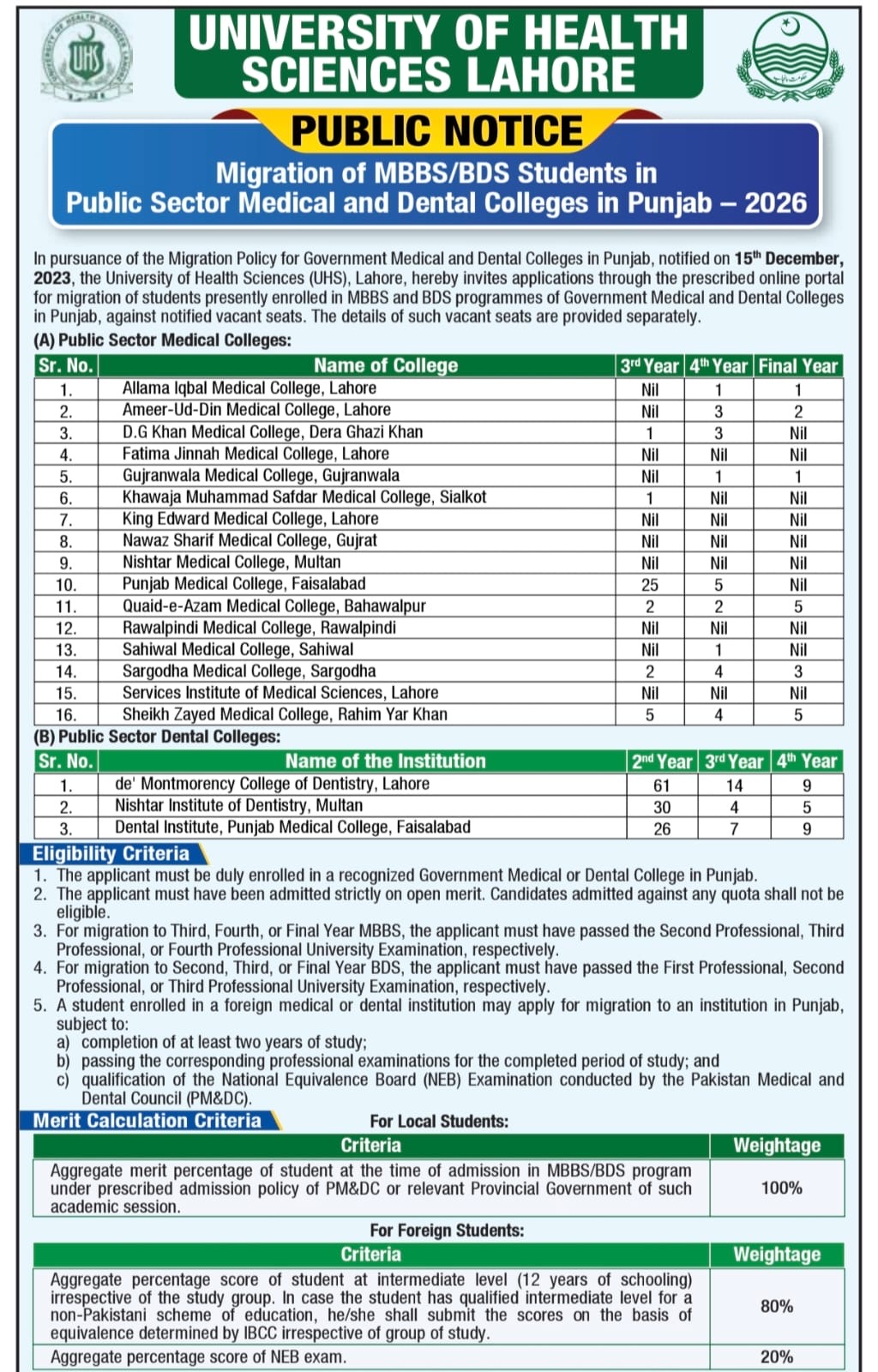 Applications are Invited for the Positions of Vice Chancellors of Public Sector Medical Universities in Punjab